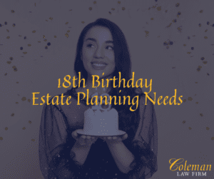 Now that you are an adult, it is time to start thinking and planning for the future like one. The first step is to meet with an experienced estate planning attorney. Coleman Law can help you as you plan your legacy. We would love to talk to you about how we can help you in this process. Click here to request your free consultation today!