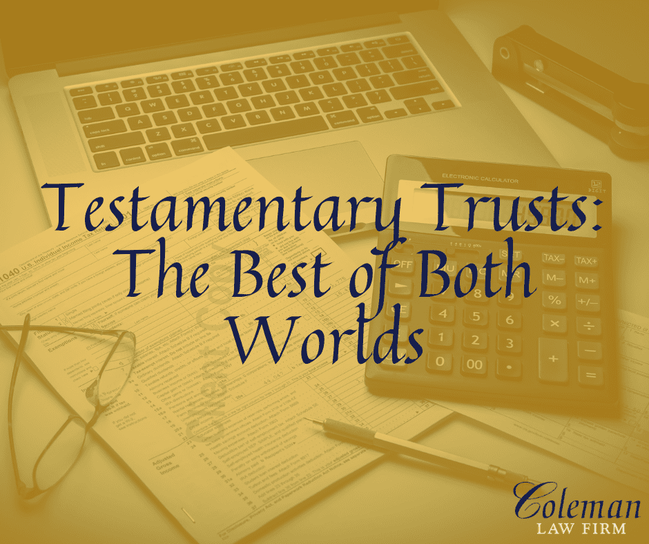 A testamentary trust will own accounts and property owned by you without beneficiary designations and helps you plan in advance.