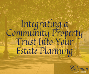 Community property trusts are not for everyone. However, if we determine that setting one up is an appropriate choice for you and your family, you can expect to save a large amount by avoiding taxes you would otherwise accrue. Coleman Law can help see whether it might be an effective addition to your other estate planning strategies. We would love to talk to you about how we can help you in this process. Click here to request your free consultation today!