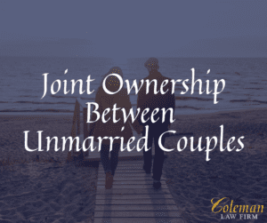Even though cohabitation without marriage is more popular than ever, unmarried couples still do not have all the legal protections that married couples enjoy. You might be certain that you have met “the one,” and you may be right. But before you hand over the keys—literally and figuratively—to another person, or sign on the dotted line with them, there is no shame in talking to a lawyer about how to protect yourself. Coleman Law can help you as you plan you and your family’s legacy. We would love to talk to you about how we can help you in this process. Click here to request your consultation today!