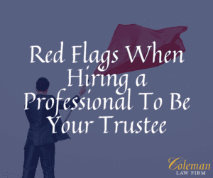 When you form a trust as part of your estate plan, one of the most important decisions you will make is who will oversee the trust’s management when you are no longer able to manage it (also known as your successor trustee). Because a trustee’s work may be time-consuming, complicated, and risk liability, many people who create a trust consider naming a professional fiduciary as their trustee. Keep in mind that if you ask your estate planning attorney to serve as your successor trustee, you should ask for a separate engagement letter from the one you sign engaging them to create your estate plan. When looking to hire a professional to serve as your trustee, the following are several red flags you should keep in mind.