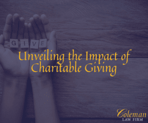 However you plan to give and whoever you plan to give to, the rules around charities can be complicated and options abound. For professional advice about giving to charities, choosing what and where to donate, and the different gifting strategies that are available, schedule a consultation with Coleman Law. Click here to request your free consultation today!