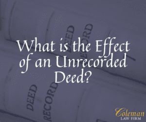 An unrecorded deed can pose significant problems—including the problem of conflicting ownership claims—and it should be recorded as soon as possible. Earlier buyers that lose out to a subsequent buyer may be able to sue the seller and recover the purchase money. To discuss a deed or title issue, contact our office and schedule an appointment.