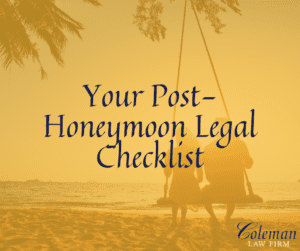 Your wedding day was absolutely perfect. You and your spouse went on your honeymoon and had the time of your lives. Now you are back and can breathe a sigh of relief as the years ahead unfold before your eyes. Well, not so fast. With your honeymoon over, there are several things you should be mindful of to ensure that the legal and financial parts of your life properly reflect your newly married status.